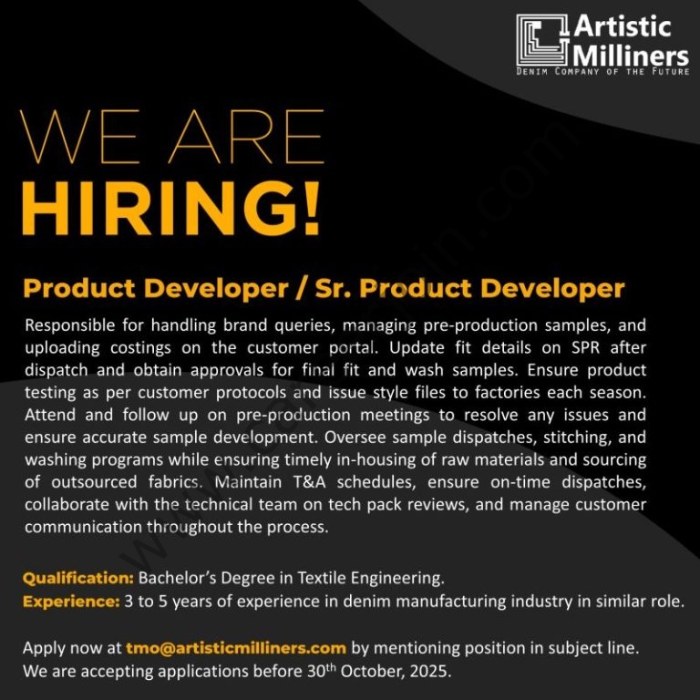 πΌ Experience: 3β5 years in denim product development (preferably in manufacturing/export)