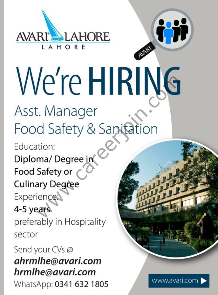 Avari Hotel Jobs Assistant Manager Food Safety & Sanitation