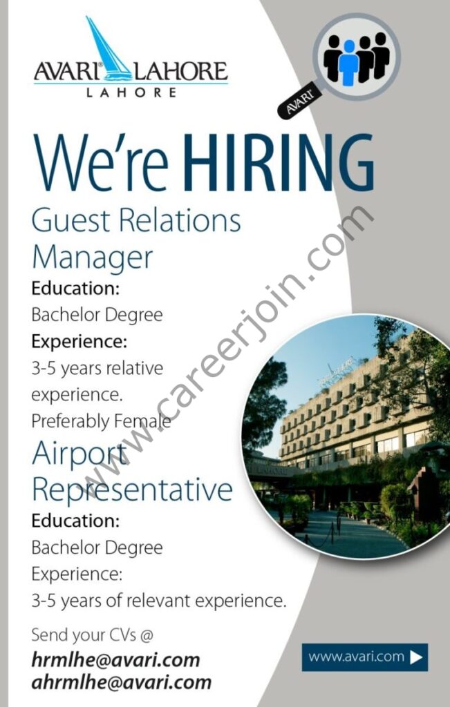 Avari Hotel Lahore Jobs Guest Relations Manager