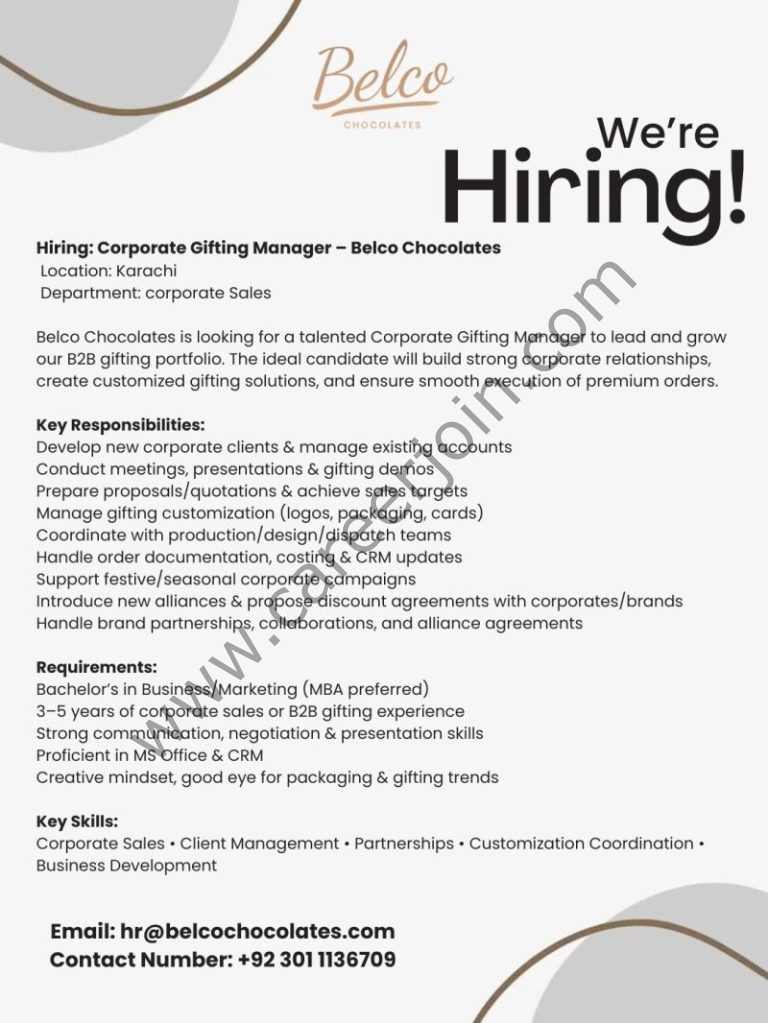 Belco Chocolates Jobs Corporate Gifting Manager