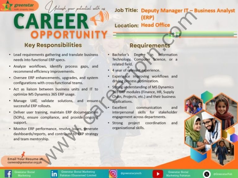 Greenstar Social Marketing Guarantee Limited Jobs Deputy Manager IT Business Analyst (ERP)