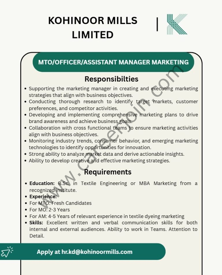 Kohinoor Mills Limited Jobs October 2025