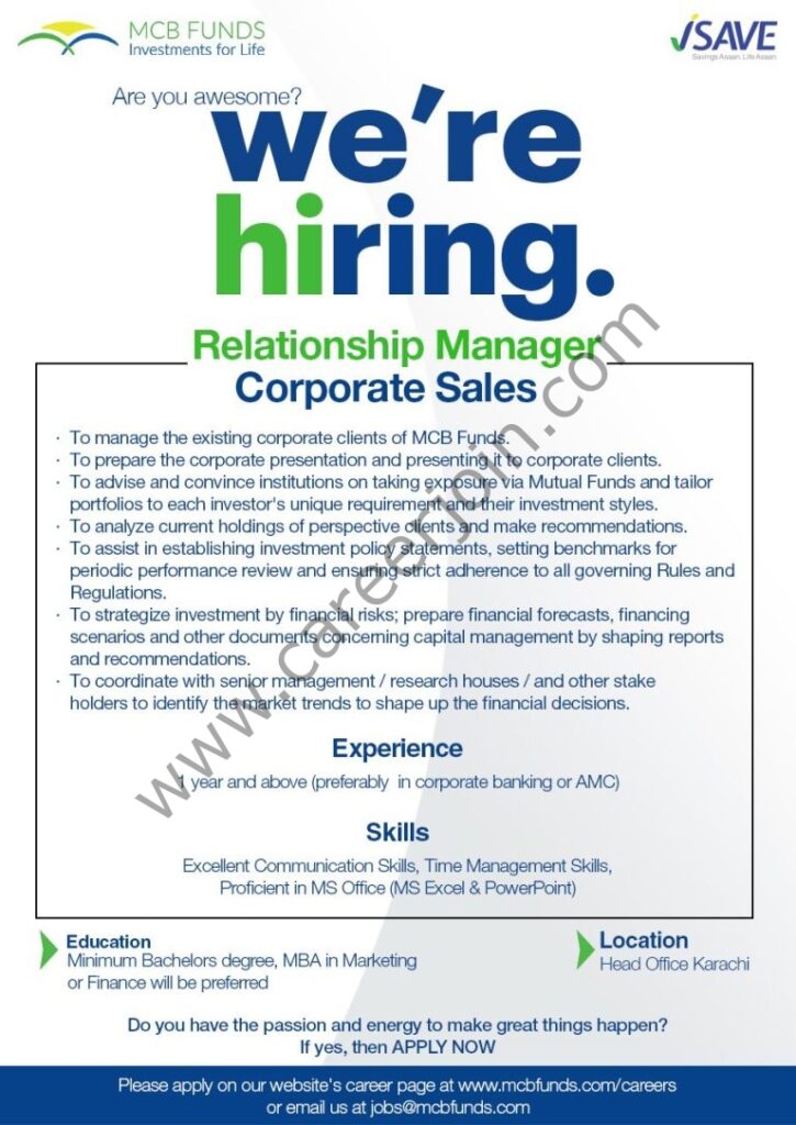 MCB Funds Jobs Relationship Manager Corporate Sales