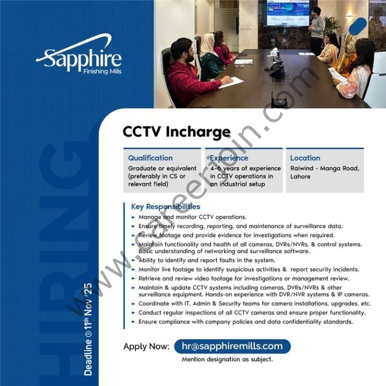 📧 Apply at hr@sapphiremills.com (Deadline: 28th Oct 2025)