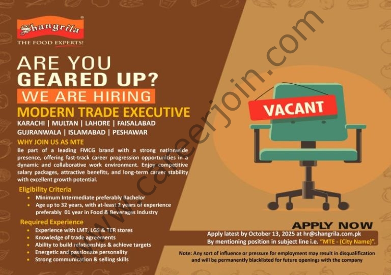 Shangrila Foods (Private) Limited Jobs Modern Trade Executives