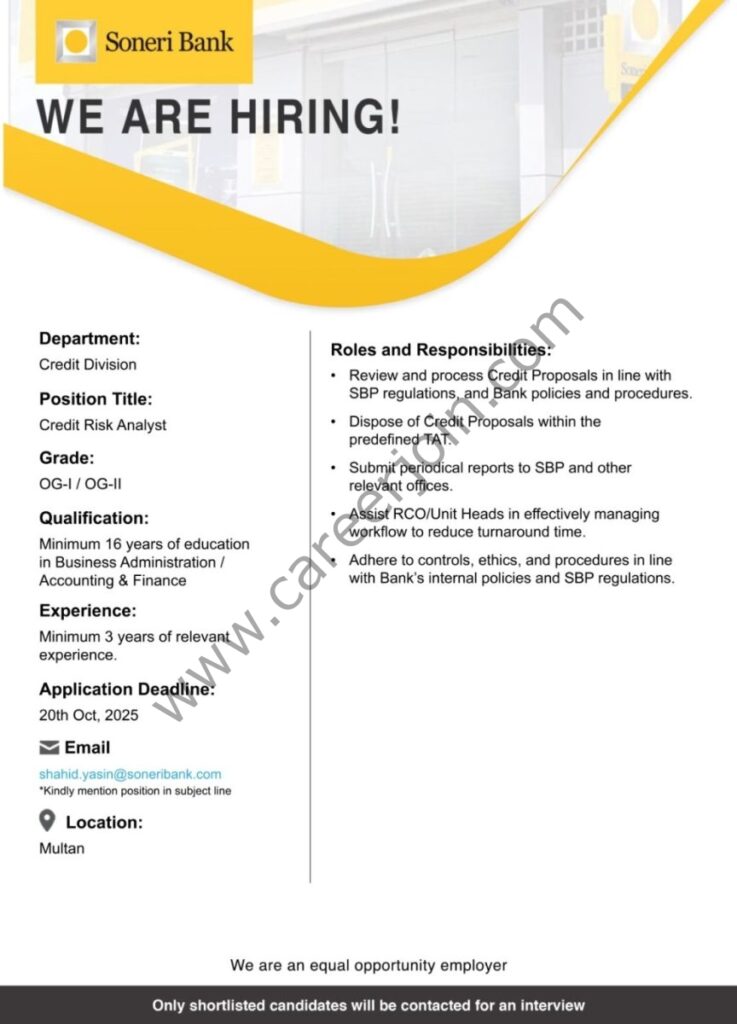 Soneri Bank Jobs Credit Risk Analyst