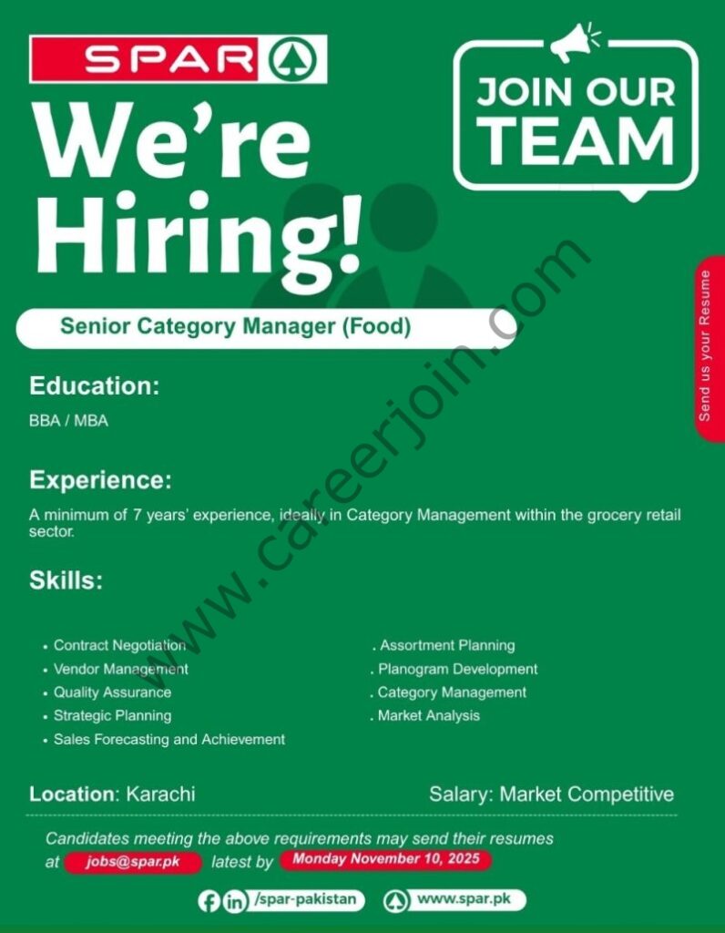 SPAR Pakistan Jobs Senior Category Manager (Food)