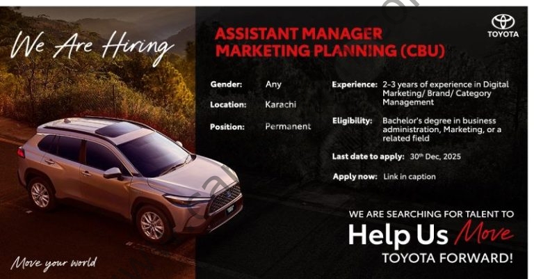Join Toyota’s Marketing team as Assistant Manager – Planning and power progress with purpose.