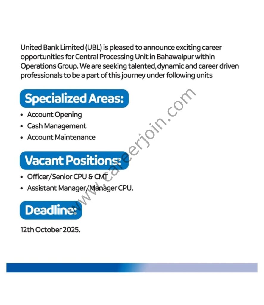 United Bank Limited UBL Jobs October 2025