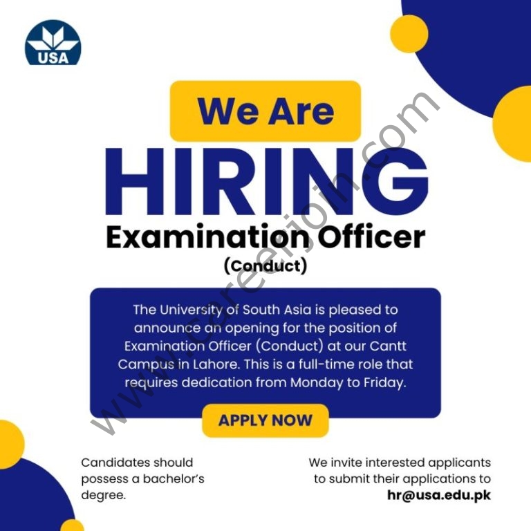 University of South Asia Jobs Examination Officer