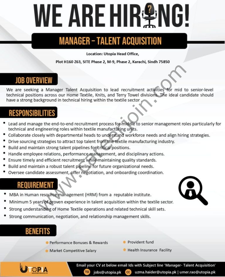 Utopia Industries Pvt Ltd Jobs Manager Talent Acquisition