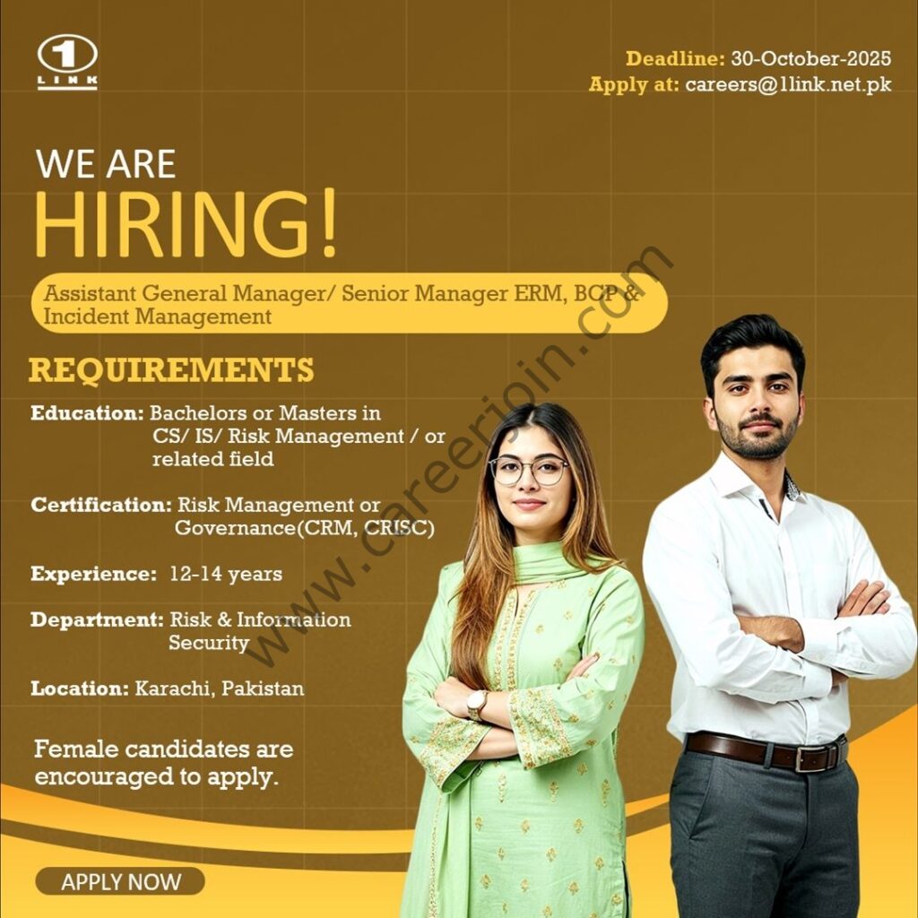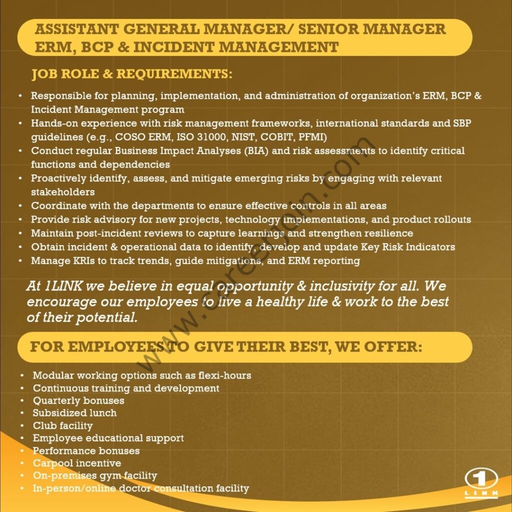 1Link Pvt Ltd Jobs Assistant General Manager/ Senior Manager ERM BCP & Incident Management