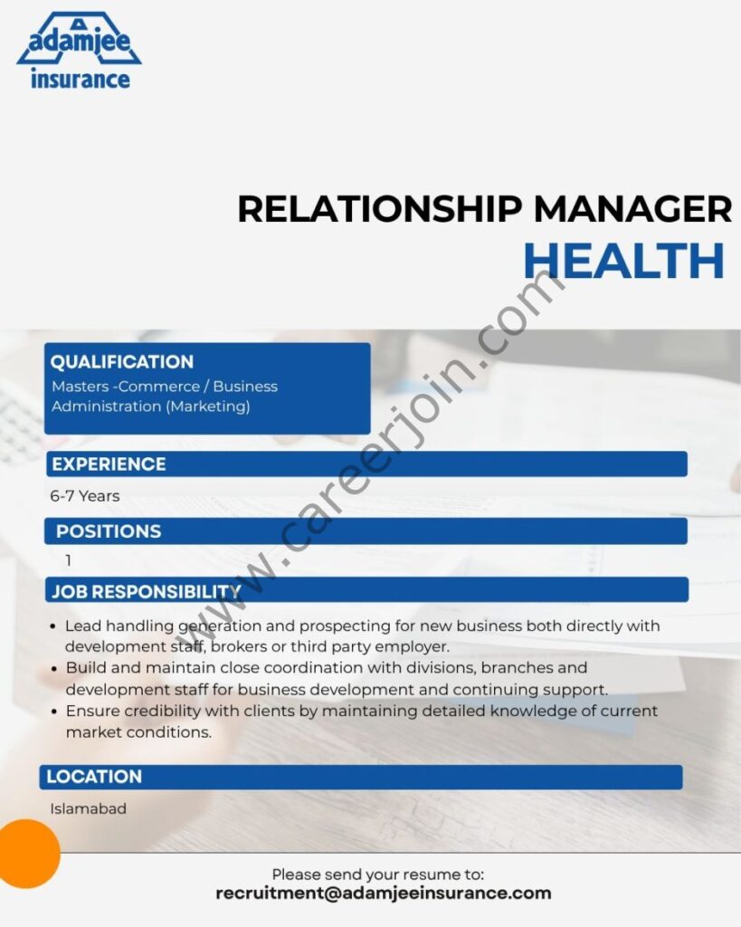 Adamjee Insurance Company Jobs Relationship Manager Health