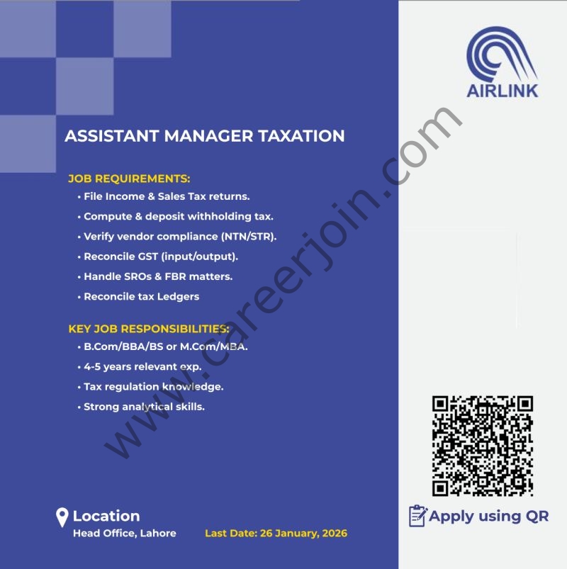 Airlink Communication Ltd Jobs Assistant Manager Taxation