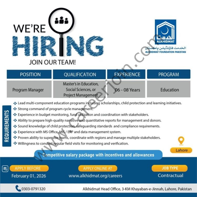 Alkhidmat Foundation Pakistan Jobs Program Manager