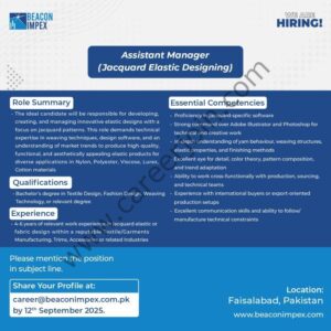 Please mention the position in subject line. Share Your Profile at: career@beaconimpex.com.pk by 12th September 2025.