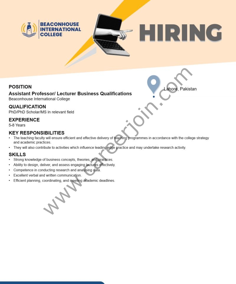 Beaconhouse International College BIC Jobs Assistant Professor / Lecturer Business