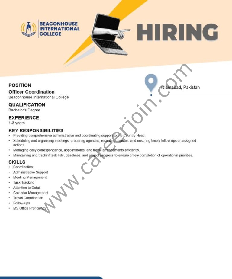 Beaconhouse International College BIC Jobs Officer Coordination