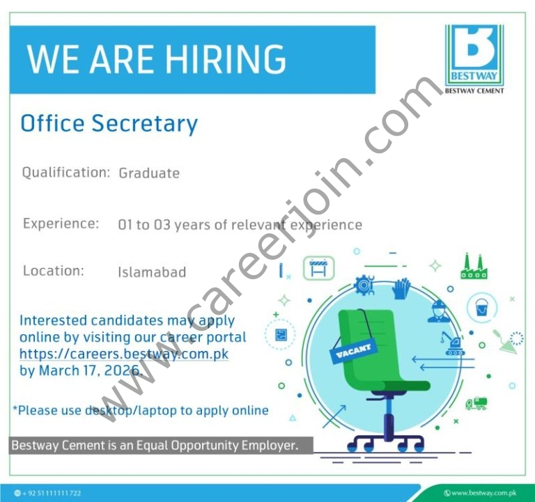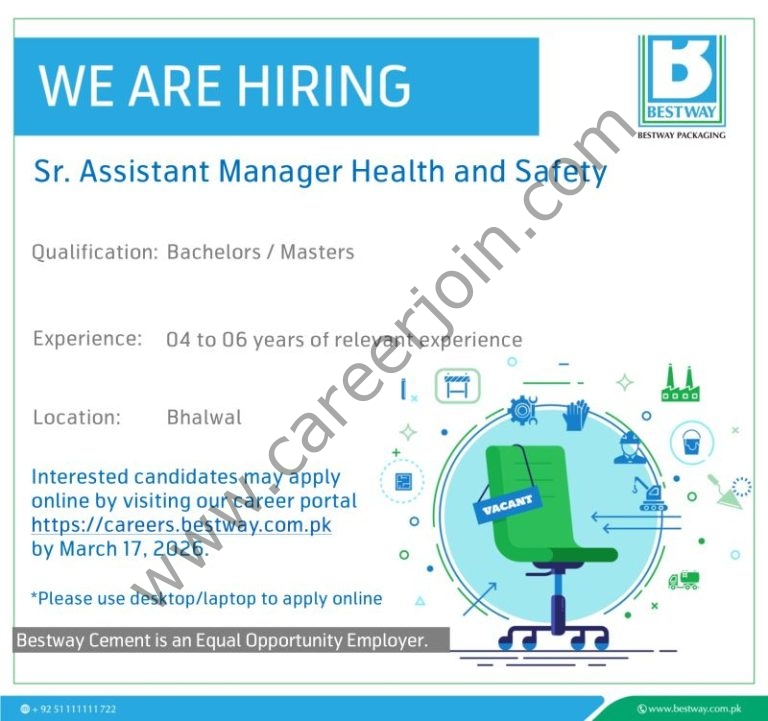 Equal Opportunity Employer: Bestway Cement is an Equal Opportunity Employer.