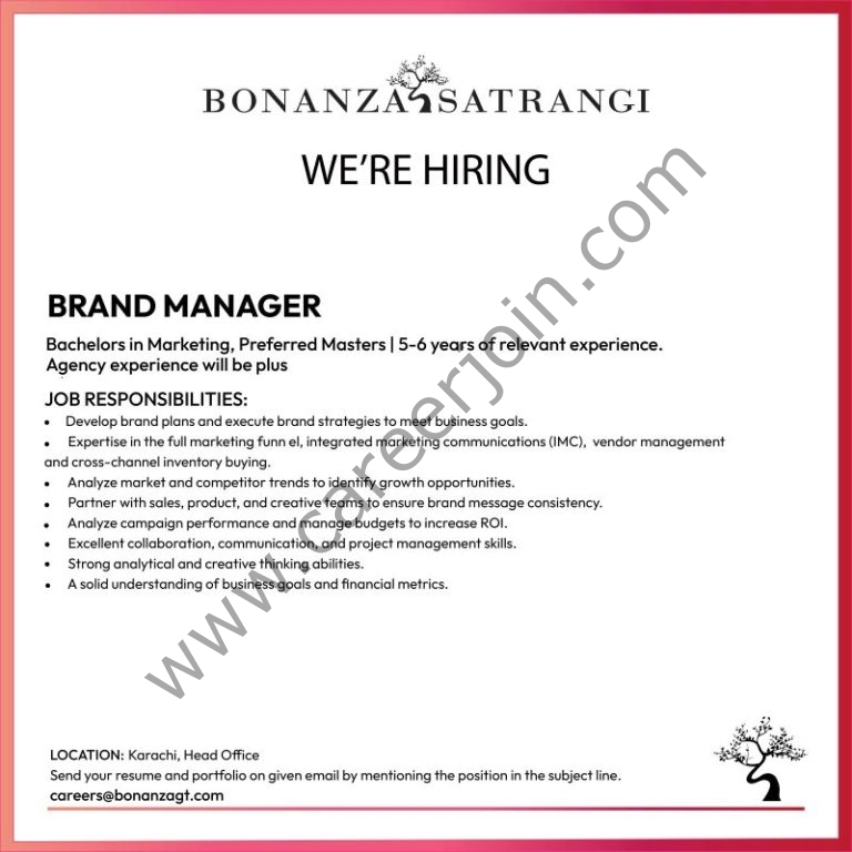 Bonanza Satrangi Jobs Brand Manager