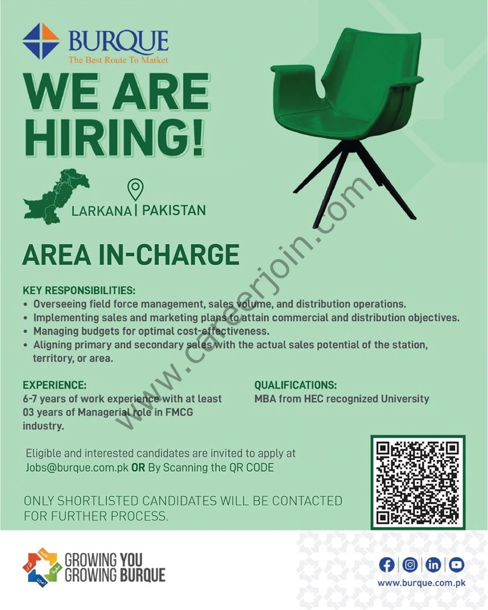 π© Email your CV:Β jobs@burque.com.pk
