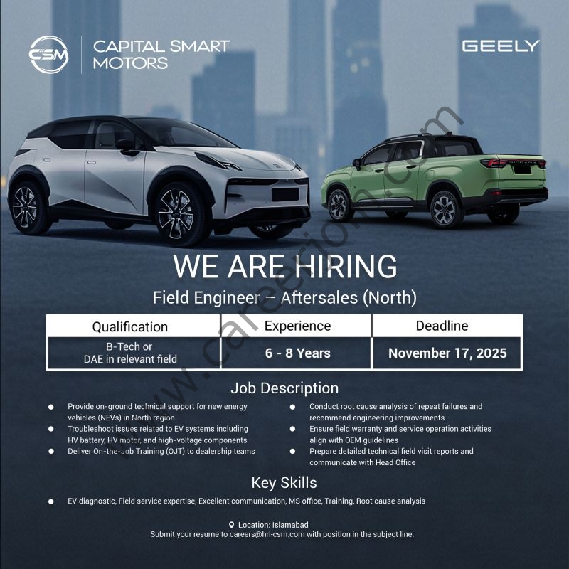 Capital Smart Motors Jobs Field Engineer Aftersales