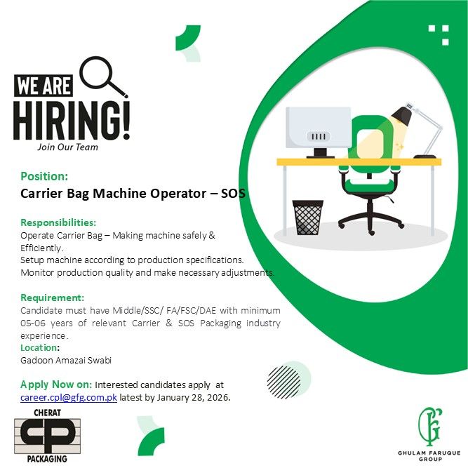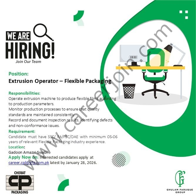 How to Apply: Interested candidates apply at career.cpl@gfg.com.pk latest by January 28, 2026.