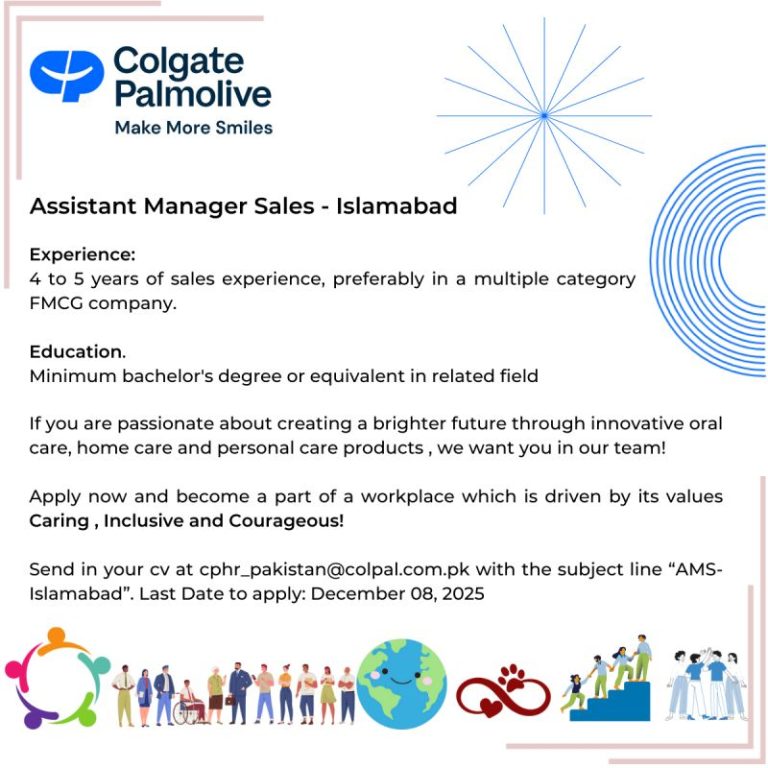 Send in your cv at cphr_pakistan@colpal.com.pk with the subject line “AMS-Islamabad”. Last Date to apply: December 08, 2025