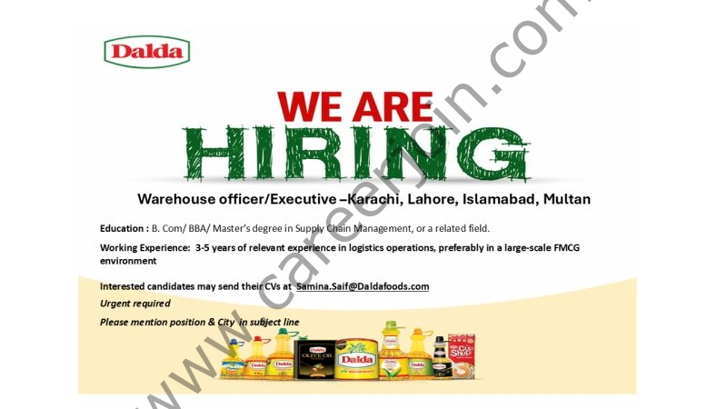 Dalda Foods Pvt Ltd Jobs Warehouse Officer/Executive
