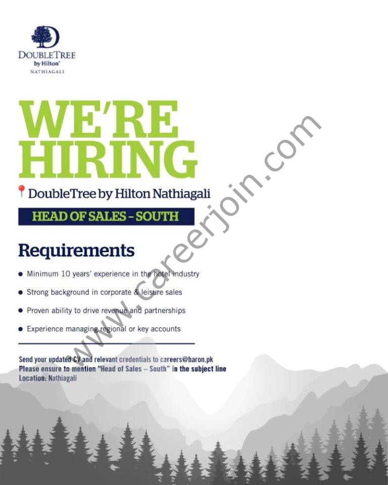 Send your updated CV and relevant credentials to careers@baron.pk Please ensure to mention “Head of Sales – South” in the subject line Location: Nathiagali