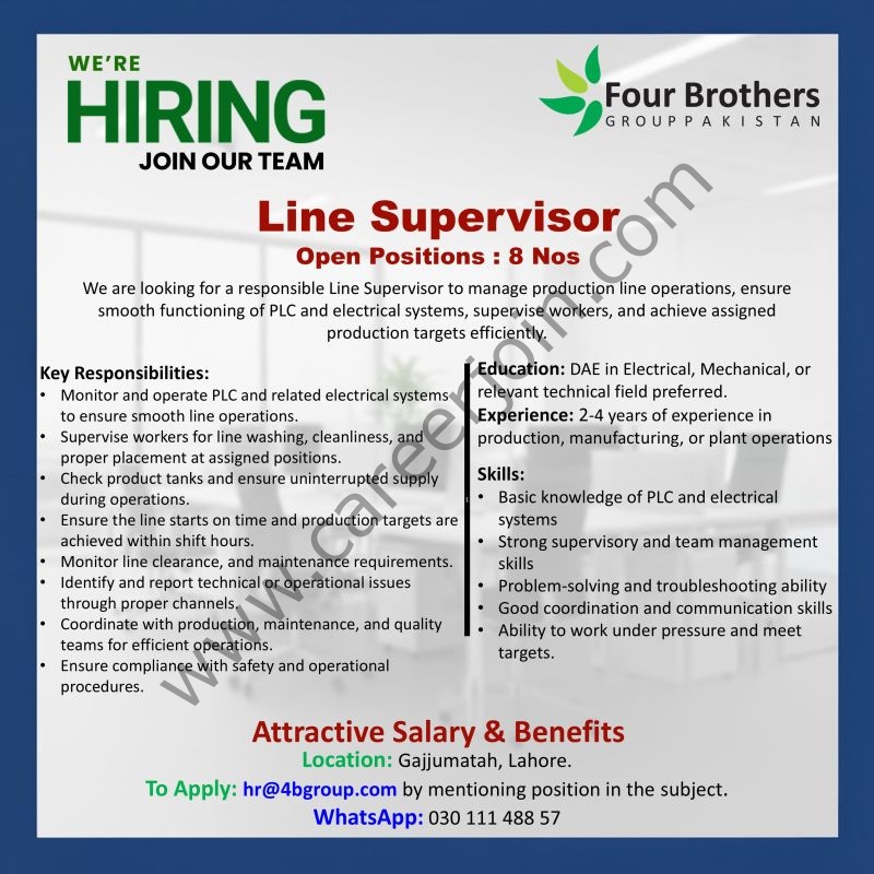 Four Brothers Group Pakistan Jobs Line Supervisor