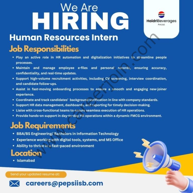 Haidri Beverages Pvt Ltd Jobs Human Resources Intern