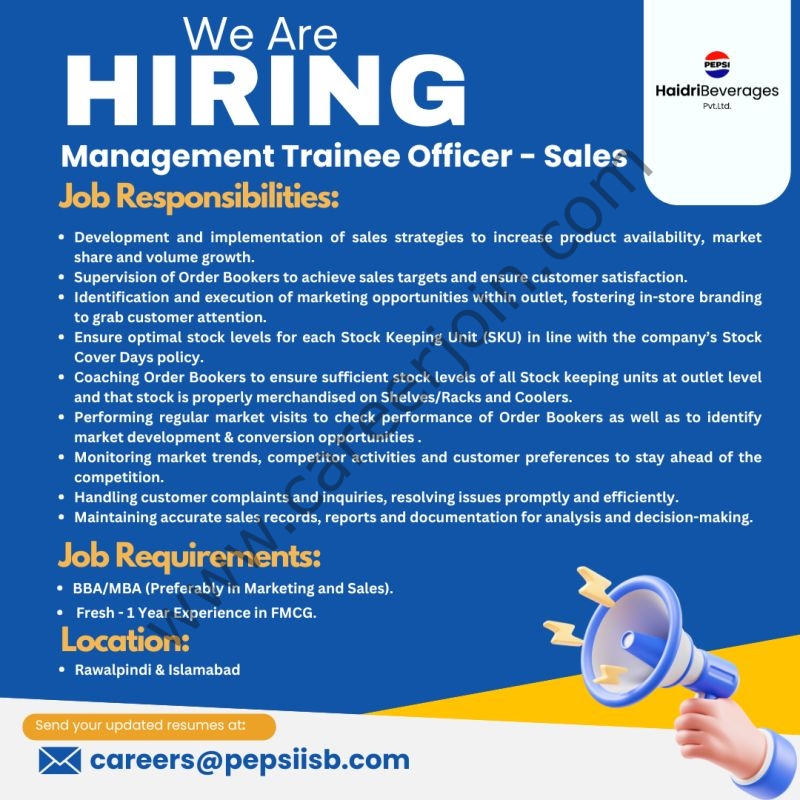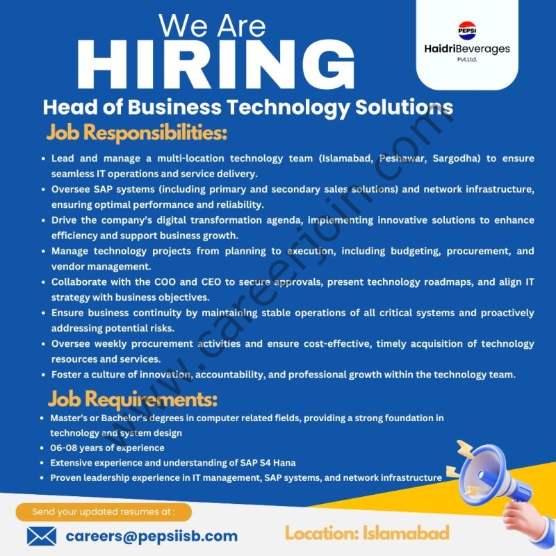 Send your updated resumes at: careers@pepsiisb.com