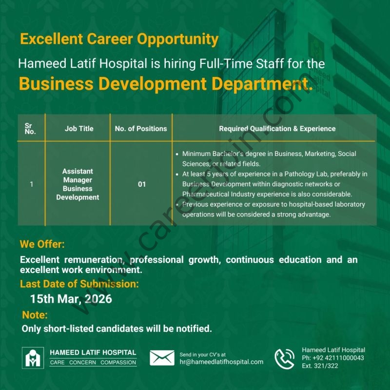 Hameed Latif Hospital Jobs Assistant Manager Business Development