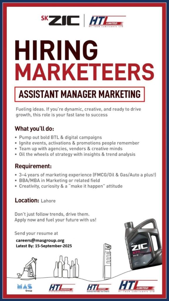 - 3-4 years of marketing experience (FMCG/Oil & Gas/Auto a plus!)
