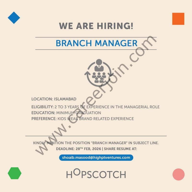 Kindly mention the position “BRANCH MANAGER” in subject line.