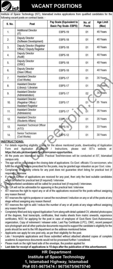 Institute of Space Technology IST Jobs January 2026