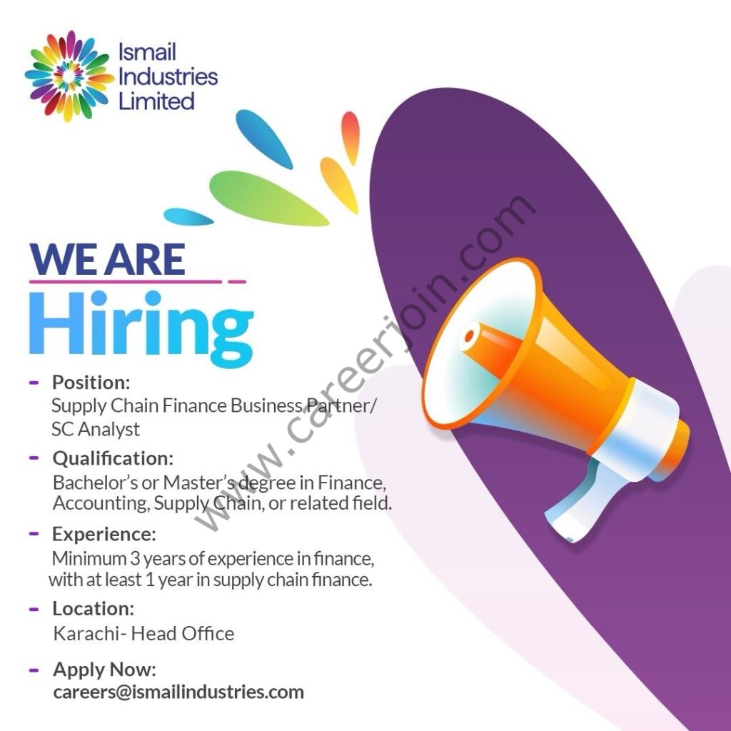 Ismail Industries Limited is looking for a passionate and analytical professional to join our team as a Supply Chain Finance Business Partner / SC Analyst at our Karachi Head Office.