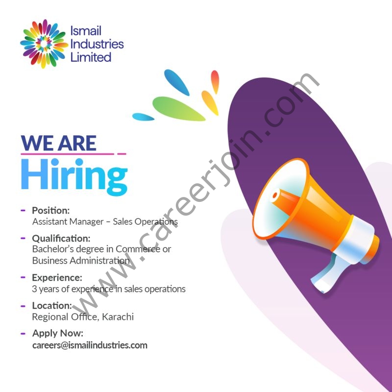 Ismail Industries Limited is seeking a proactive Assistant Manager – Sales Operations to support efficient order processing, coordination, and sales operations through strong cross-functional collaboration and process management.