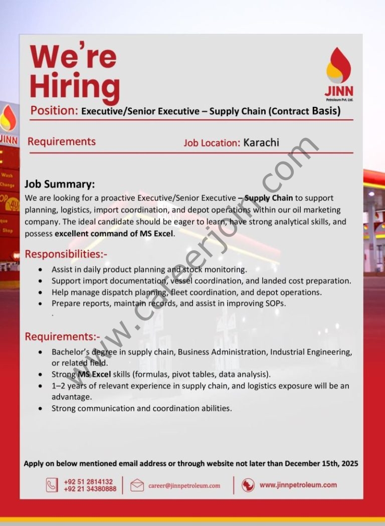 JINN Petroleum Jobs Executive/Senior Executive Supply Chain