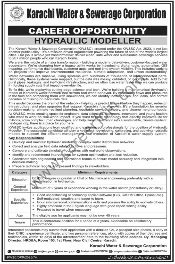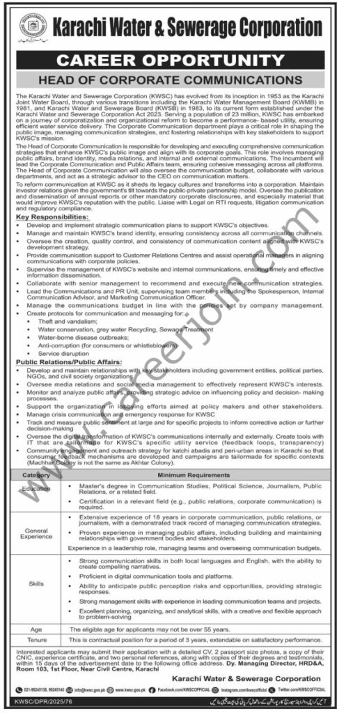 Karachi Water & Sewerage Corp KWSC Jobs December 2025