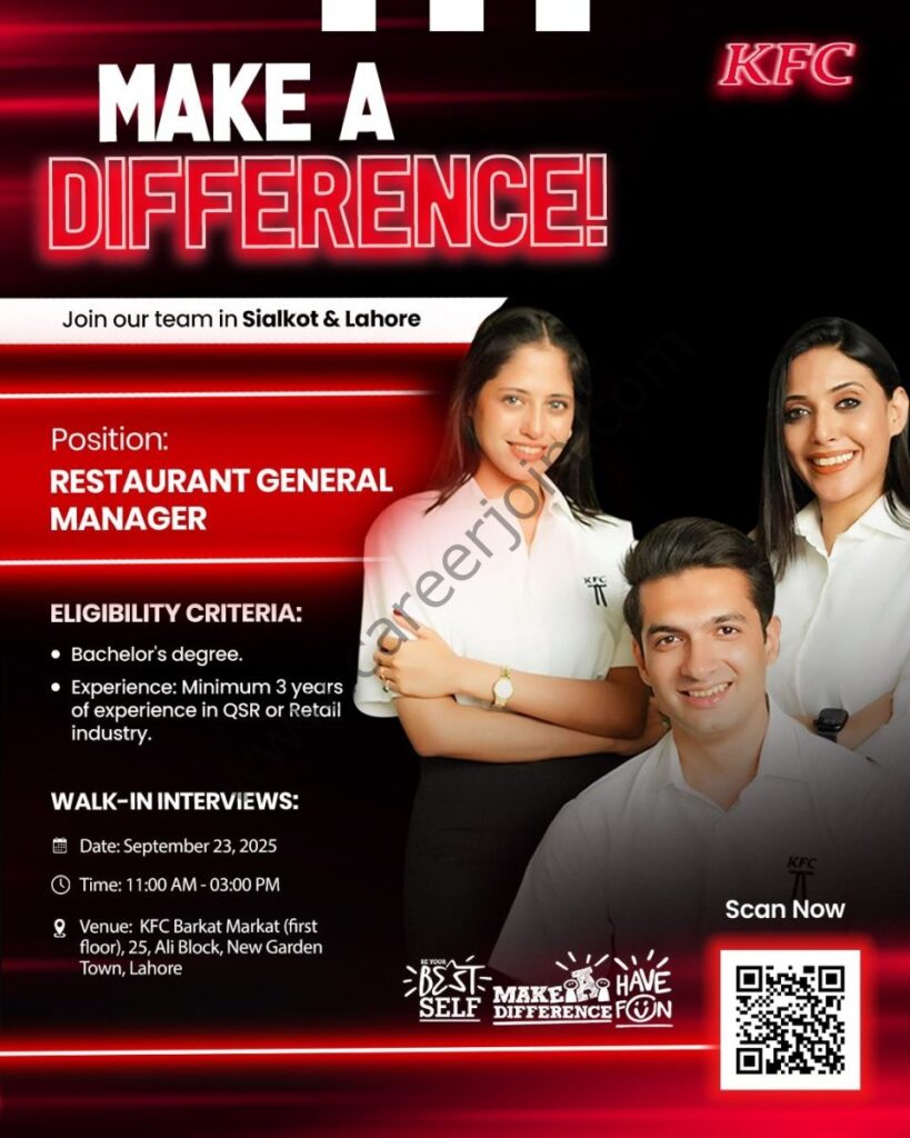 We’re hiring Restaurant General Managers for our KFC restaurants in Sialkot & Lahore.
