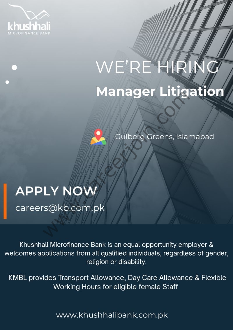 Khushhali Microfinance Bank Limited is looking for Manager Litigation