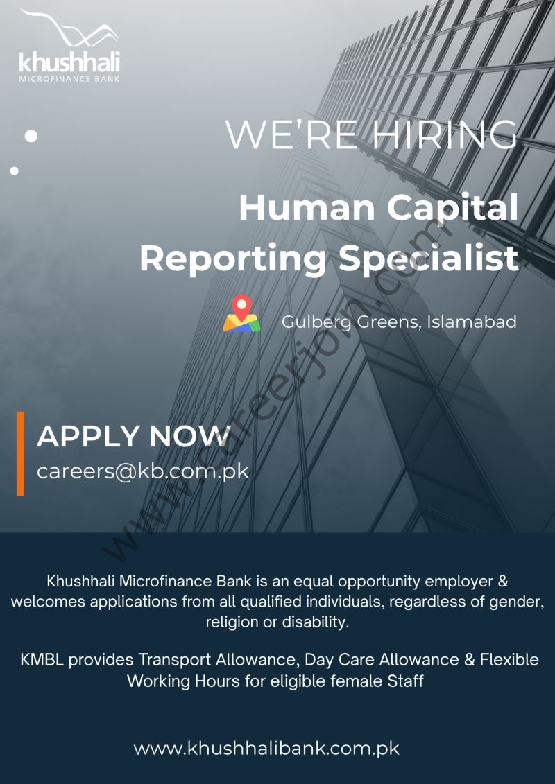 Khushhali Microfinance Bank Limited is looking for Human Capital Reporting Specialist.