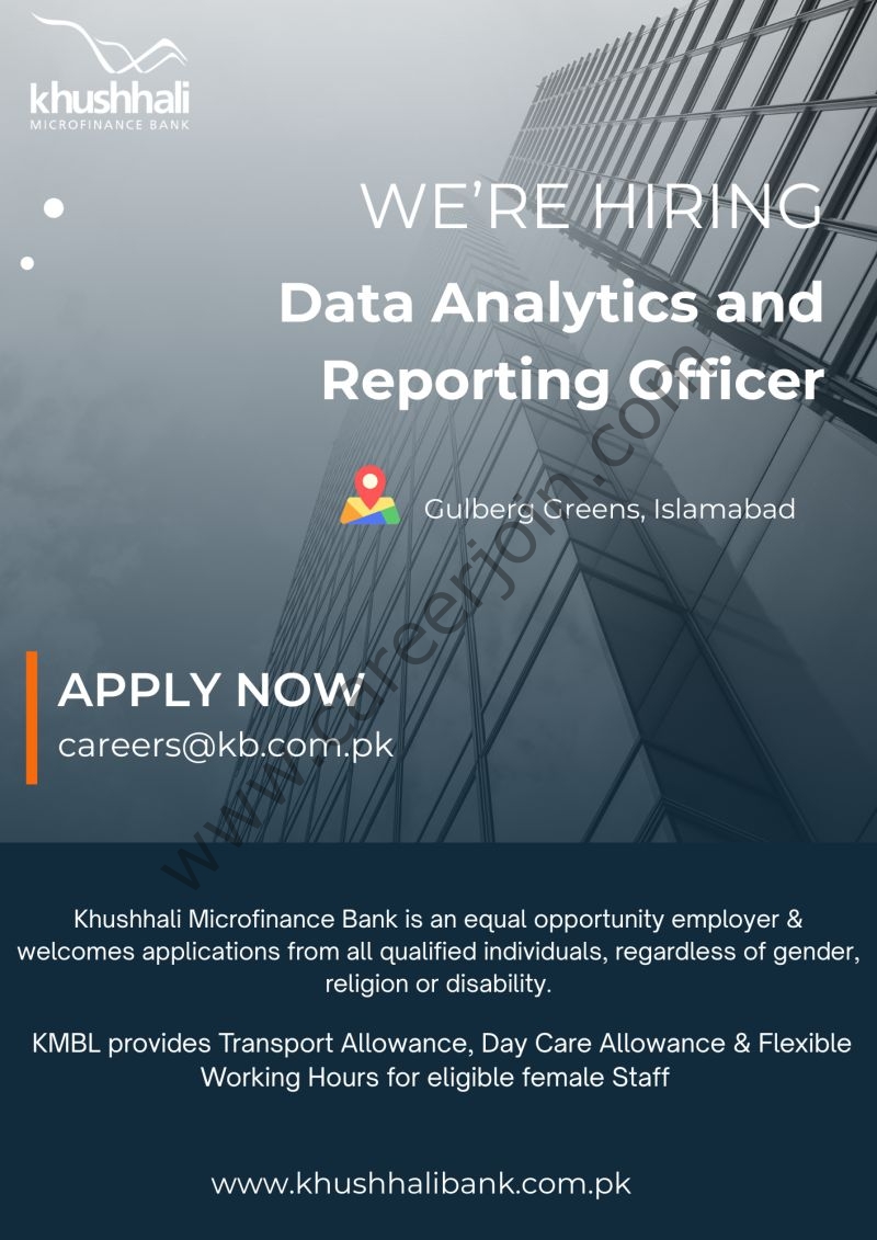 Khushhali Microfinance Bank Limited is looking for Data Analytics and Reporting Officer.