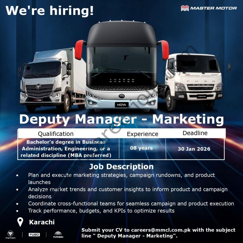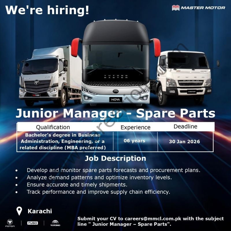 Master Motor Limited Jobs January 2026