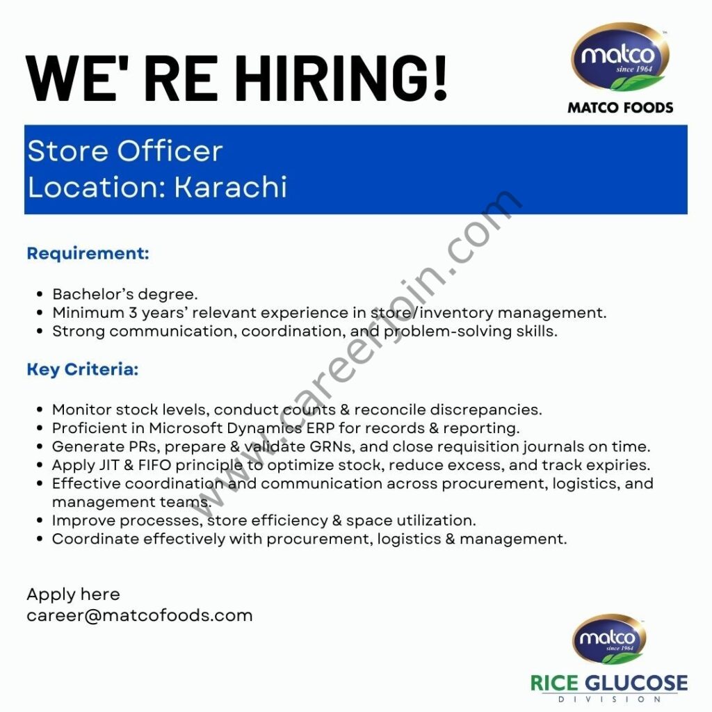Matco Foods Limited Jobs Store Officer