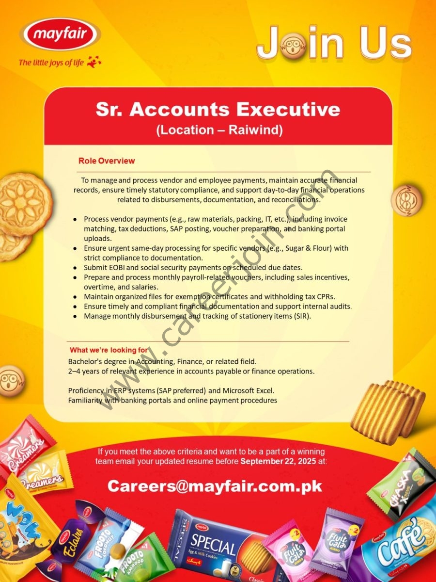 Position :Sr. Accounts Executive (Location – Raiwind)