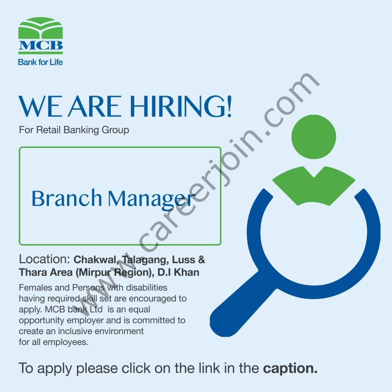 Are you looking for a career in one of Pakistan’s leading Banks? The Retail Banking Group of MCB Bank is looking for Branch Manager to join its team of talented, motivated and highly skilled professionals.
