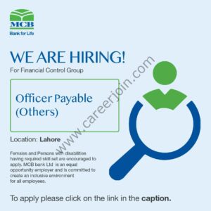 Are you looking for a career in one of Pakistan’s leading Banks? The Financial Control Group of MCB Bank is looking for an Officer Payable (Others) to join its team of talented, motivated, and highly skilled professionals.